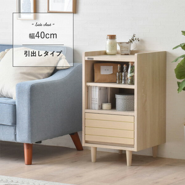 サイドラック 木製 シェルフ 幅40 TWICE トワイス チェスト キャビネット 収納 サイドチェスト リビング 北欧 ソファテーブル サイドテーブル ブラウン ナチュラル TW70-40HO 【送料無料】