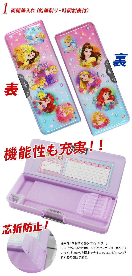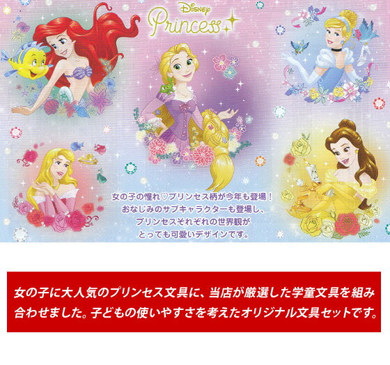 女の子に大人気のディズニープリンセスの文具に、当店が厳選した学童文具を入れた、子どもの使いやすさを考えたオリジナル文具セットです。